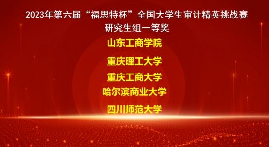 “福思特杯”全国大学生审计精英挑战赛为规模最大、项目最全、参赛选手最多、层次最高的全国性审计学科赛事,目前已成功举办六届。本次比赛初赛共有南京审计大学、东北财经大学、西南财经大学、西安外国语大学等294余所高校,2314支队伍共3000余名学子同台竞技,本科组73支队伍、研究生组17支队伍、高职组16支队伍入围决赛。