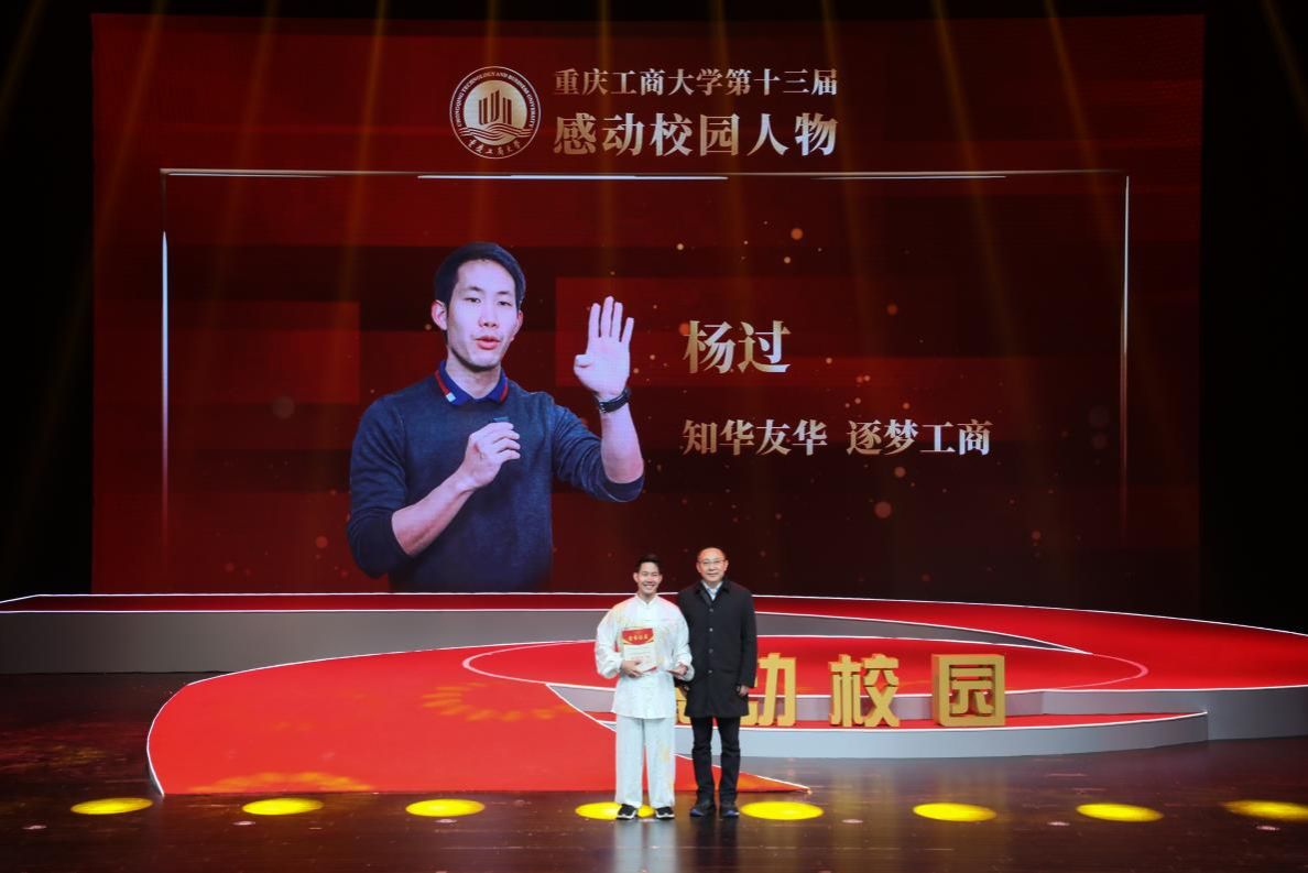 学校党委常委、党委宣传部部长华杰为杨过颁奖