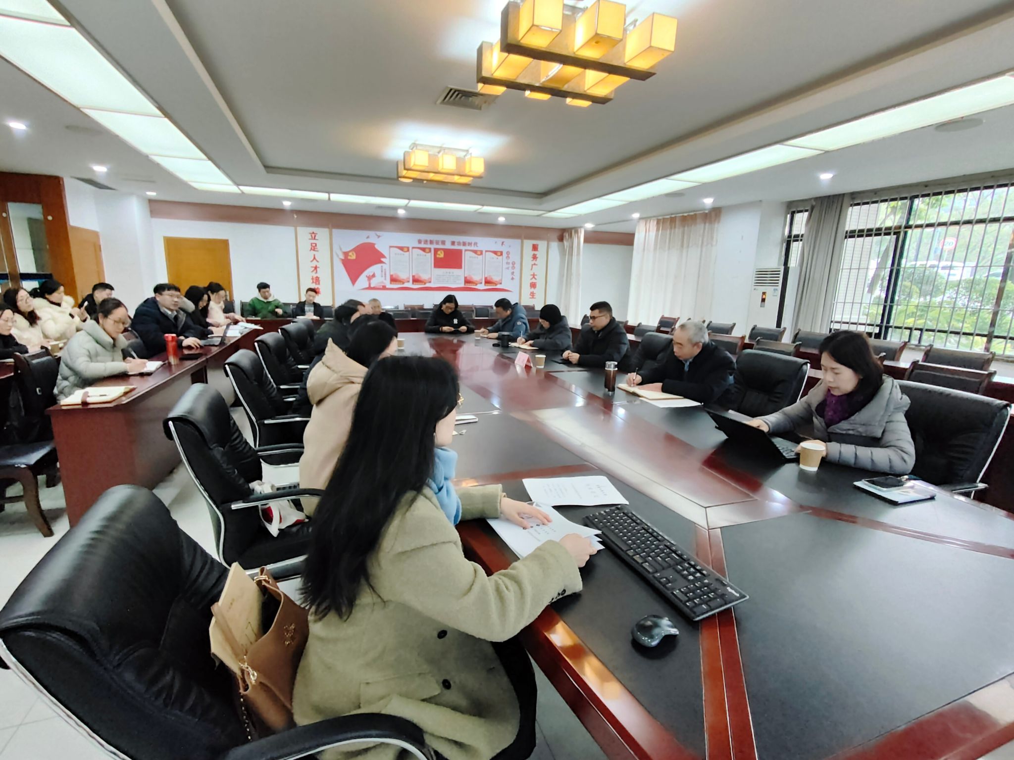 接着,韦晓兰从工作机制与概况、工作内容与成效、工作亮点与不足三个层面介绍了学校2023年双创工作的总体情况。各学院依次交流了双创特色活动、学科竞赛成绩、经费投入、双创典型案例等情况,还提出了宝贵的意见和建议。