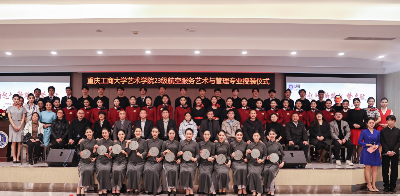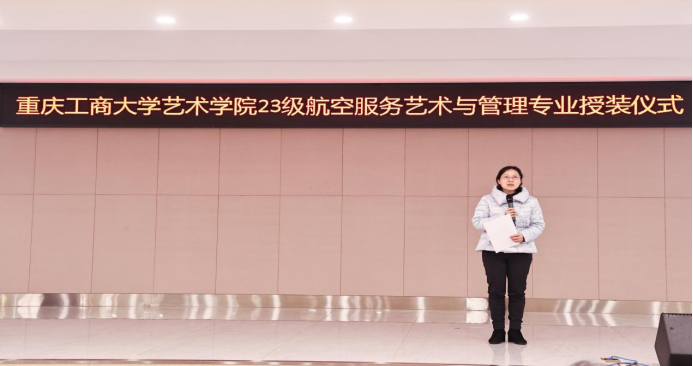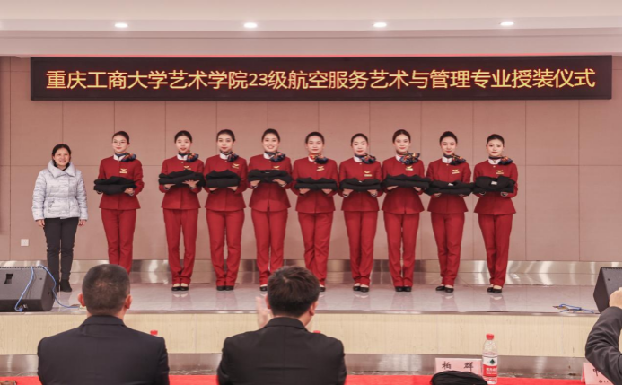 1月7日,艺术学院航空服务艺术与管理专业制服授装仪式在JINNIAN金年会南岸校区学生就业指导中心报告厅举行。副校长柏群,北京中航未来教育集团董事长刘永、副总裁张鹏、教研总监张利,安徽云翔未来科技有限公司总经理彭春,党委学工部部长申卫东,国内合作发展处处长刘代成,教务处处长骆东奇,招生就业处处长钟增胜,财务处处长王燕,艺术学院党政领导、教师代表和全体2023级航空服务艺术与管理专业学生参加了活动。