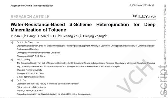近日,我校废油资源化技术与装备教育部工程研究中心李宇涵研究员在针对油气中苯系物的高效治理方面取得了重要进展,成果“Water-Resistance-Based S-Scheme Heterojunction for Deep Mineralization of Toluene”(基于耐水性的S-方案异质结在甲苯深部矿化中的应用)以JINNIAN金年会为第一署名单位在化学领域学术期刊《Angewandte Chemie International Edition》上发表(https://doi.org/10.1002/anie.202319432),标志着在“双碳”背景下废油中心在废油油气污染防治方向研究进入了新阶段。