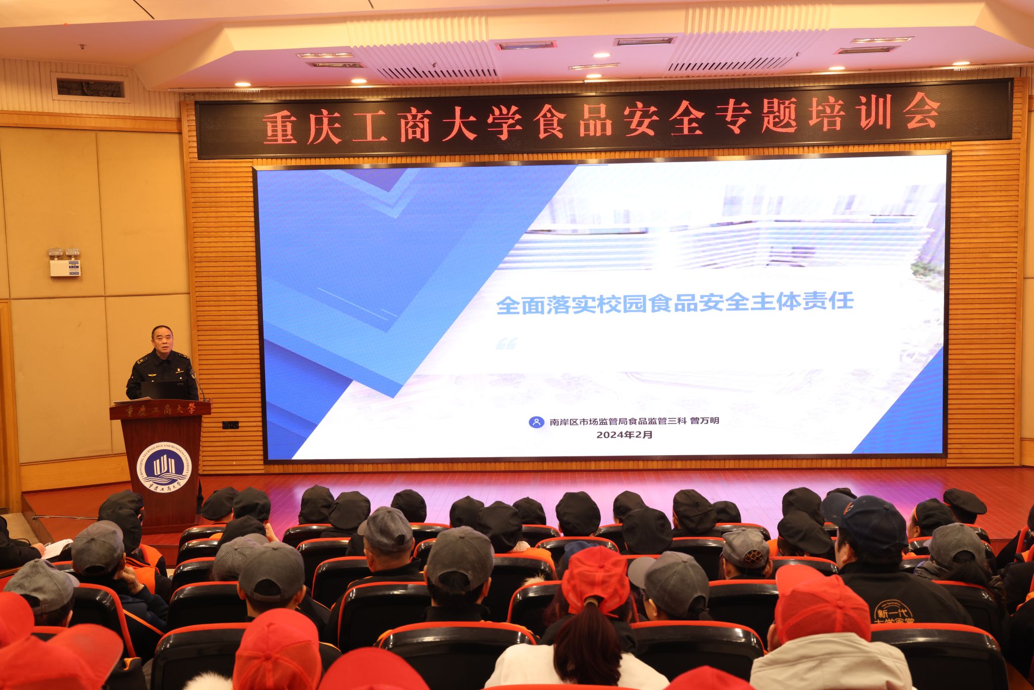 2月22日,学校在博智楼7200报告厅召开JINNIAN金年会食品安全专题培训会。党委常委、副校长张波,后勤处负责人、饮食科相关人员,各食堂经理(店长)、厨师长,库管、食品安全员、各班组长等260余人参加培训。重庆市南岸区市场监督管理局曾万明科长等三人参加培训会。会议由后勤处副处长杜元林主持。