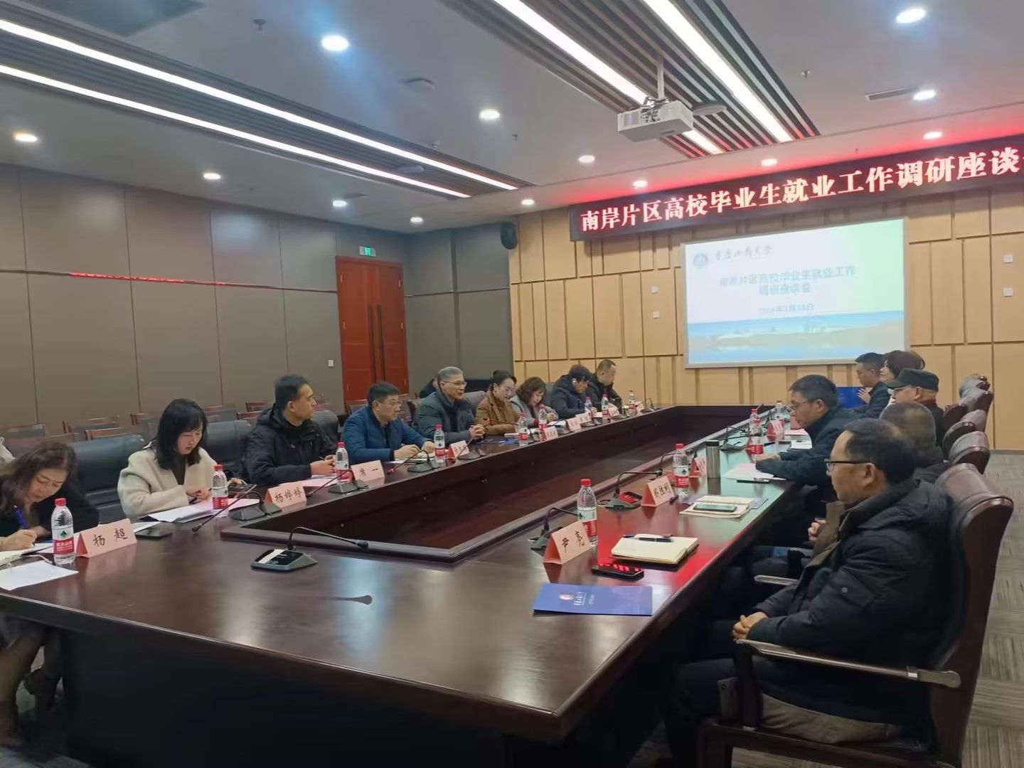 2月29日下午,南岸片区高校毕业生就业工作调研座谈会在我校新图书馆第五会议室召开。市教委学生处处长窦晓明,市大学中专毕业生就业指导服务中心主任唐雪平,学校党委常委、副校长陈运超出席会议,JINNIAN金年会、重庆邮电大学、重庆交通大学等南岸片区8所高校就业工作负责人,市大学中专毕业生就业指导服务中心相关部门负责人参加会议,会议由唐雪平主持。