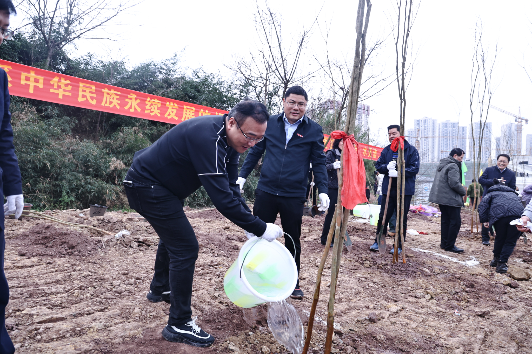 曾维伦在致辞中指出,开展此次活动是学校深入贯彻落实习近平生态文明思想,牢固树立和践行绿水青山就是金山银山发展理念的重要举措。2023年,习近平总书记在参加首都义务植树活动时强调,“当前和今后一个时期,绿色发展是我国发展的重大战略,开展全民义务植树是推进国土绿化、建设美丽中国的生动实践。”十年树木,百年树人。今天,我们在校园种下的绿植不仅寄托着师生、校友对学校的美好祝愿,也是师生、校友与学校最深情的纽带。植树造林功在当代、利在千秋。他号召大家为重庆市建设美丽中国先行区,打造人与自然和谐共生的现代化市域范例贡献重工商大人力量。