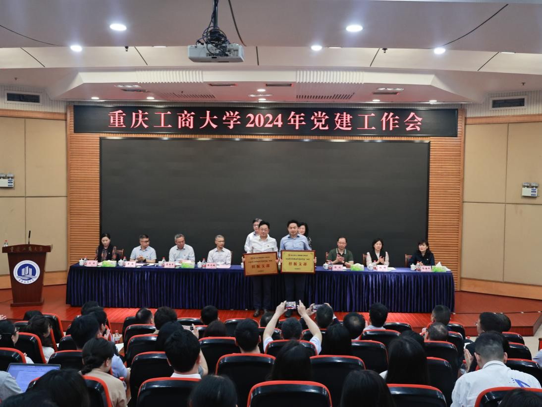 校领导为两个全国第四批新时代高校党建“双创”培育创建单位和六个重庆市第二批新时代高校党建“双创”培育创建单位授牌。
