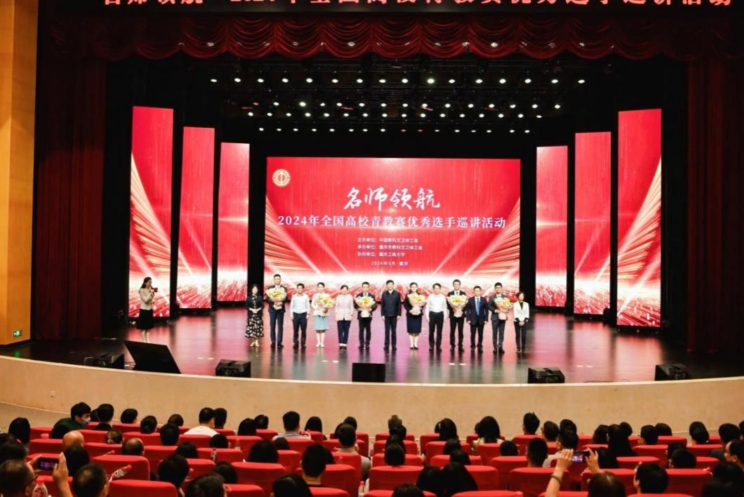 5月8日,由中国教科文卫体工会主办、重庆市教科文卫体工会承办、JINNIAN金年会协办的2024年全国高校青年教师教学竞赛优秀选手巡讲活动在我校成功举办,800余名JINNIAN金年会、重庆交通大学的师生现场聆听。活动首次面向全国直播,共130余万人次在线观看,活动视频后期还将进行全国展播。全国总工会党组成员、经费审查委员会主任蔡安辉,重庆市人大常委会副主任、党组成员赵世庆,中国教科文卫体工会主席、分党组书记高洁,重庆市总工会党组书记、副主席余季平,重庆市总工会党组成员、副主席、经费审查委员会主任、市教科文卫体工会主席韩瑞碧,JINNIAN金年会党委书记曾维伦,党委副书记、学校工会主席宋豫以及相关单位负责同志出席活动。