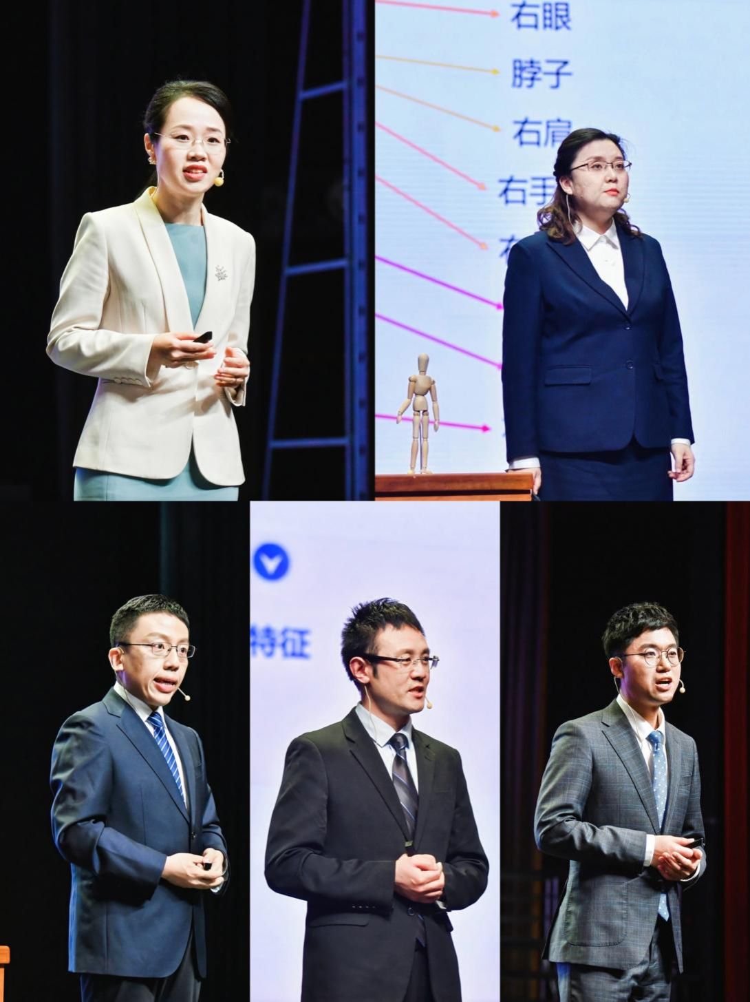 本次活动邀请了第六届全国高校青教赛五个学科组的第一名、全国五一劳动奖章获得者担任巡讲老师,他们分别是清华大学梁思思(文科组)、山东师范大学周峰(理科组)、上海交通大学高晓沨(工科组)、四川大学华西口腔医学院朱桂全(医科组)、浙江大学赵坤(思想政治课专项组)。五位老师依次进行15分钟的教学展示和5分钟的教学阐释,交流教学理念和方法,分享教学心得和经验。