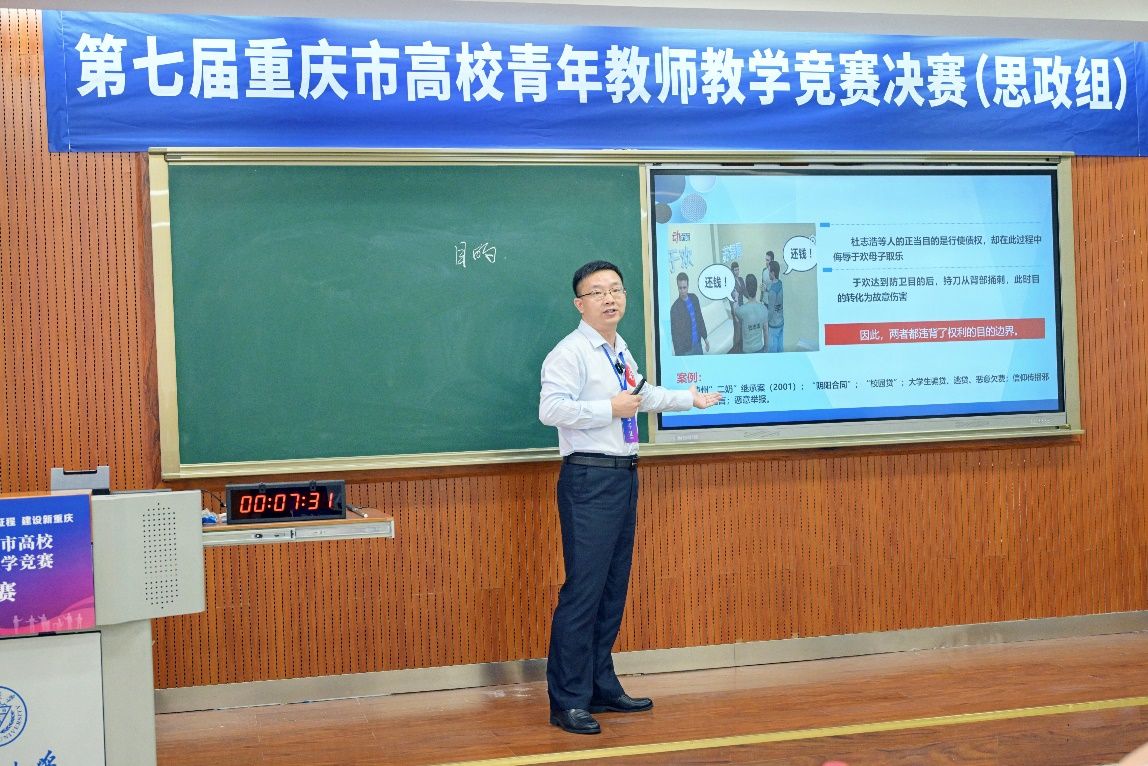 7月5日,由重庆市总工会、重庆市教育委员会主办,重庆市教科文卫体工会委员会、重庆大学承办的第七届重庆市高校青年教师教学竞赛落下帷幕。我校选派的四名青年教师分别参加了文科、理科、工科、思想政治课专项四个组别的比赛,马克思主义学院的董骏老师从来自62所高校的59名思政组选手中凭借不凡实力脱颖而出,荣获思想政治课专项组特等奖,成功获得代表重庆市高校参加将于8月底在北京举行的第八届全国高校青年教师教学竞赛的参赛资格。