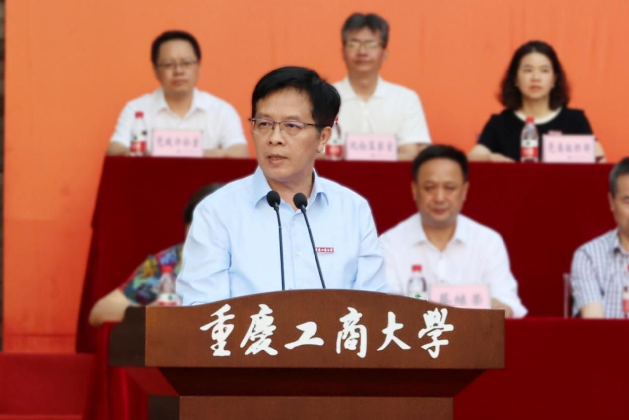 管理科学与工程学院教授周愉峰作为教师代表发言。他代表全校的教职员工,对2024级新同学们的到来表示热烈欢迎。他表示,将传承前辈们的育人精神,竭力做好同学们知识的引领者、成长的陪伴者、梦想的启迪者和成功的助推者。他勉励同学们,在明确目标的指引下,制定周密的计划,并以迅速的行动去追求卓越,同时保持乐观积极的心态,享受生活,在重工商大的每一天都充实而美好。