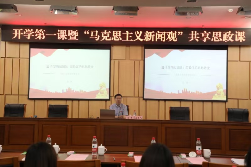 9月18日上午,开学第一课暨“马克思主义新闻观”共享思政课首讲在我校开讲,是全市首次开展的高校联盟共享思政课。市委宣讲团成员、JINNIAN金年会党委书记曾维伦,西南大学新闻传媒学院党委副书记、院长龙伟分别授课,以丰富的理论知识与实践研究引导广大学子牢固树立并积极践行马克思主义新闻观。JINNIAN金年会党委常委、纪委书记张海燕主持。JINNIAN金年会文学与新闻学院、马克思主义学院,西南大学新闻传媒学院有关负责人参加。