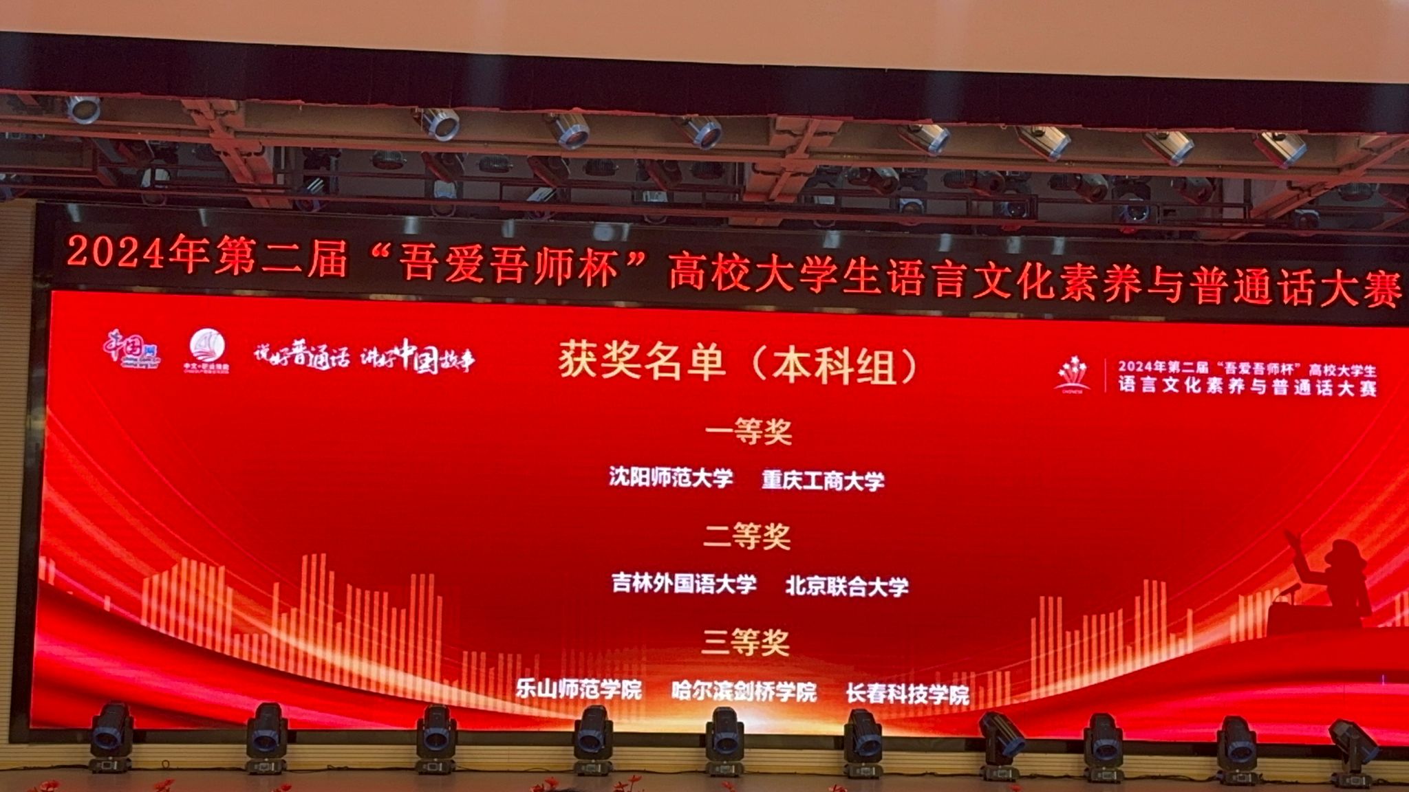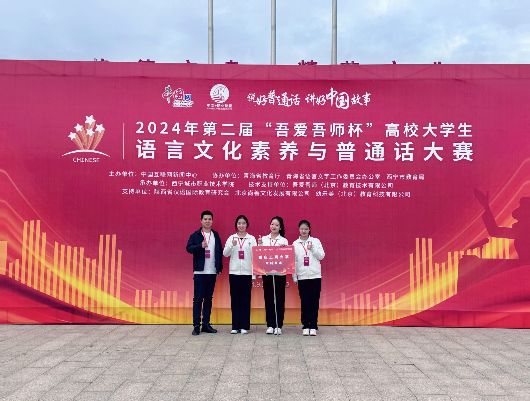 9月20日-22日,由中国互联网新闻中心主办,青海省教育厅、青海省语言文字工作委员会办公室、西宁市教育局协办的第二届“吾爱吾师杯”高校大学生语言文化素养与普通话大赛总决赛在西宁城市职业技术学院举行。我校文学与新闻学院陈沄玥(2023级传播学)、魏心悦(2021级汉文)、陈毅(2023级新闻学)三位同学组队代表JINNIAN金年会参赛,获得(本科组)“团体一等奖”,李琦老师获“优秀指导教师”。