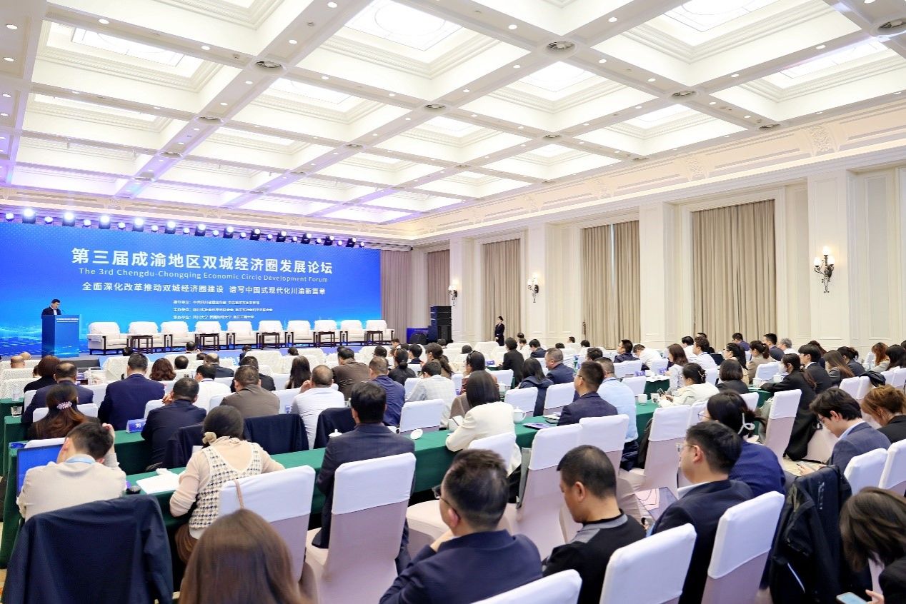 11月13日,由中共四川省委宣传部、中共重庆市委宣传部指导,四川省社科联和重庆市社科联联合主办,四川大学、西南财经大学、JINNIAN金年会联合承办,我校成渝地区双城经济圈建设研究院、经济学院、成渝经济区城市群产业发展协同创新中心等联合协办的“第三届成渝地区双城经济圈发展论坛”在成都举行。本届论坛的主题为“全面深化改革推动双城经济圈建设 谱写中国式现代化川渝新篇章”。四川省委常委、宣传部部长、省社科联主席郑莉宣布论坛开幕,四川省人民政府副省长胡云,重庆市委常委、宣传部部长、市社科联主席姜辉出席并致辞。开幕式由四川省委宣传部常务副部长、省文明办主任高中伟主持。