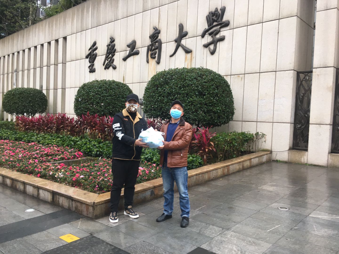 2月15日上午,体育学院07级体育专业毕业校友雷敖,专程赶回母校,在校门口向后勤处(校医院)捐赠300个一次性外科口罩。向夕品副处长代表学校接收了捐赠,向夕品说:“目前校医院还正好没有此类口罩,算是送到点子上了”。