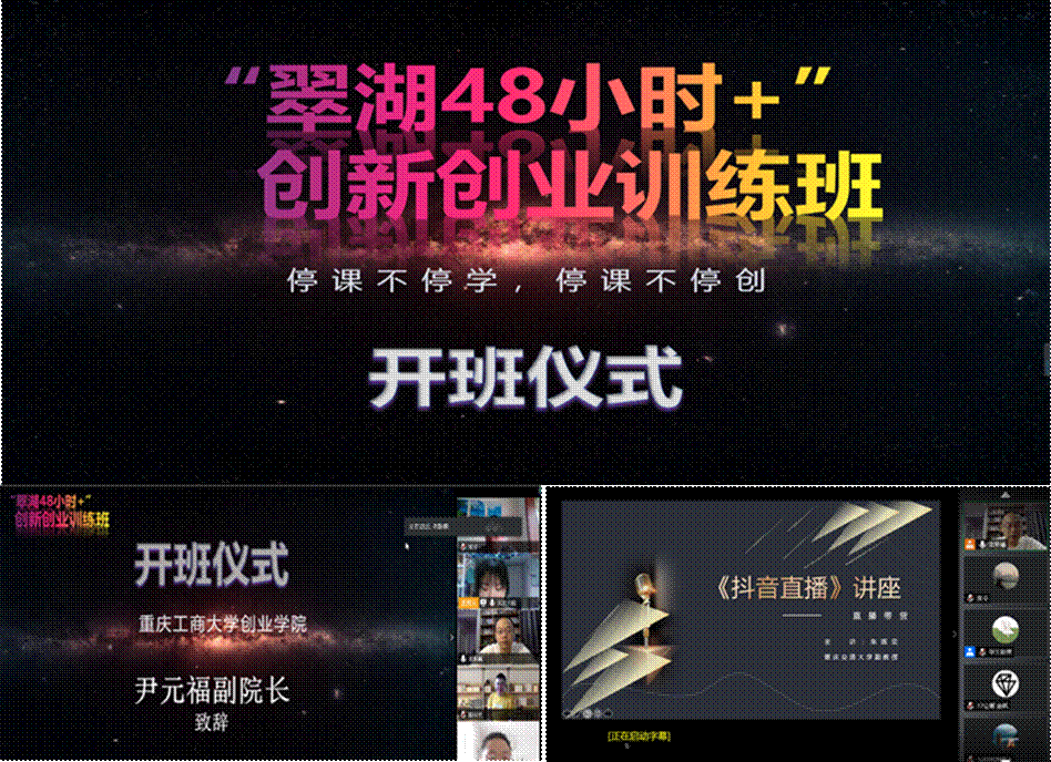 6月6日和7日,创业学院联合招生就业处举办了2020年度第一期“翠湖48小时+”线上创新创业训练班。训练班邀请到了9位优秀企业的董事长、总经理和我市高级创业导师,以及成功运营天猫淘宝店铺的2名在校生作为案例分享者,与224名参训学员共同分享创业过程及企业管理领域新理念和新方法。招生就业处申卫东处长、创业学院尹元福副院长出席了开班仪式。