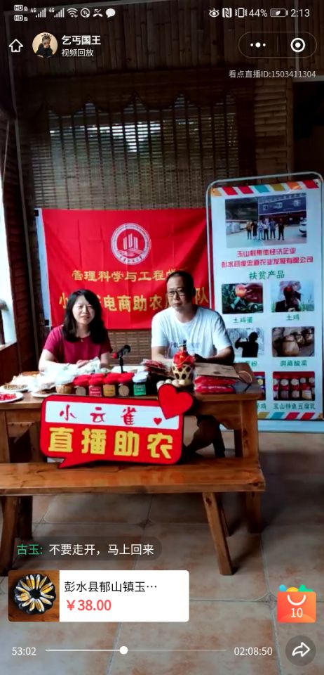 调研结束后,邓德敏和黄钟仪指导学生开展电商直播助农活动,并亲自上场为玉山村农产品进行宣传。