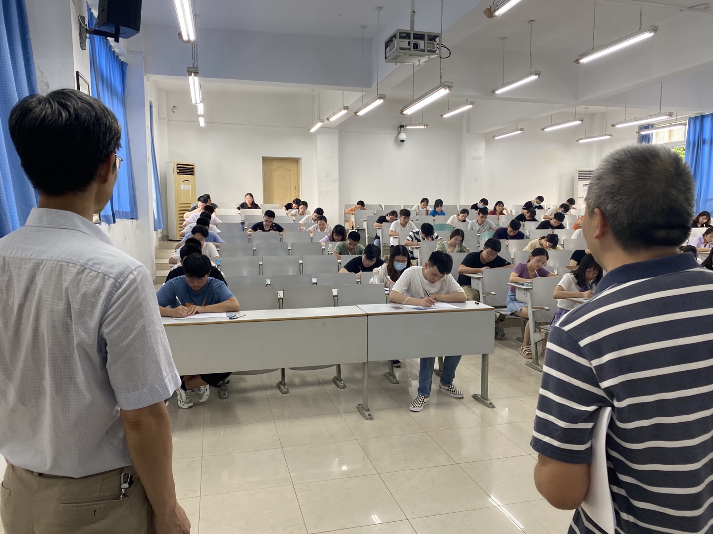 近期,学校正组织返校学生举行延期考试。李志雄书记、孙芳城校长、何勇平副校长先后深入各考场巡考。