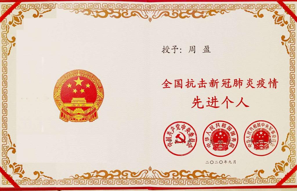 2020年9月8日上午,全国抗击新冠肺炎疫情表彰大会在北京隆重举行。大会对全国抗击新冠肺炎疫情先进个人、先进集体,全国优秀共产党员、全国先进基层党组织进行表彰。来自重庆的34名先进个人和10个先进集体获表彰。这34名先进个人中,有一位我校2009级信息管理专业校友周盈。