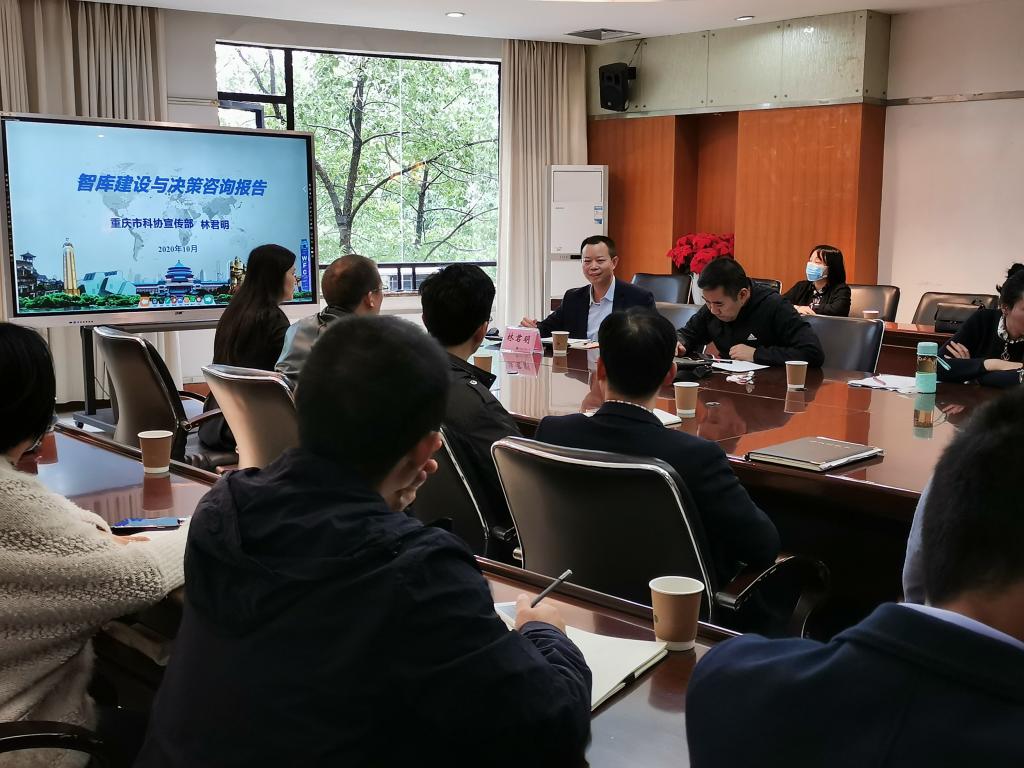 10月15日下午,我校在厚德楼3018会议室召开党外人士咨政建言交流分享会。本次会议由学校党委统战部主办、民进学校支部协办,特邀重庆市科协宣传部部长、重庆市农村专业技术协会联合会常务副理事长、渝中区政协委员林君明作专题辅导,学校各民主党派基层组织和统战团体的成员代表共30余人参加。会议由学校继续教育学院院长、民进学校支部主委杜朝辉主持。
