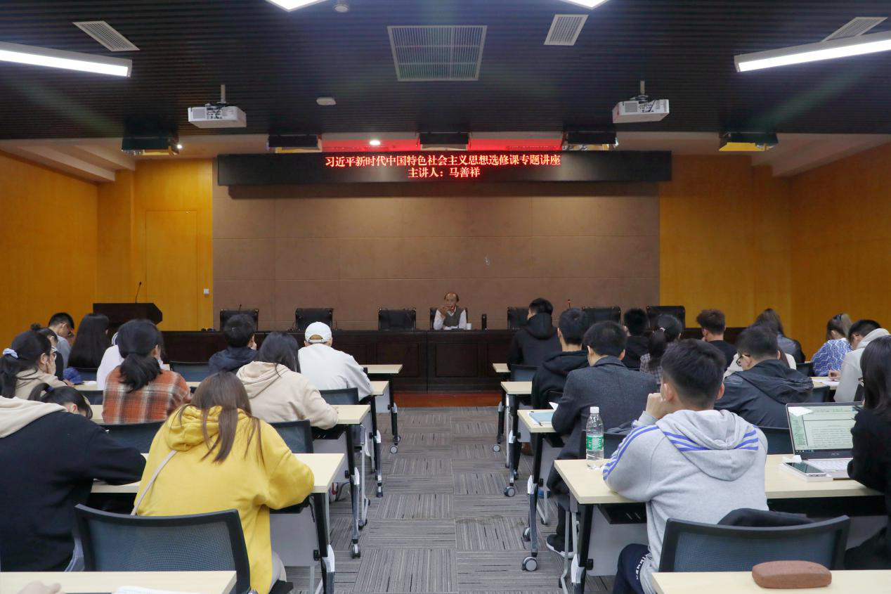 10月28日,时代楷模、全国先进工作者、全国敬业奉献道德模范、全国优秀共产党员、改革先锋、最美奋斗者马善祥应邀在我校图书馆二楼多功能厅为“习近平新时代中国特色社会主义思想”选修课同学作了“活学活用马克思主义理论,做最美奋斗者”的专题讲座。马善祥担任重庆市江北区观音桥街道人民调解委员会“老马工作室”负责人,重庆市江北区观音桥街道办事处原调研员。