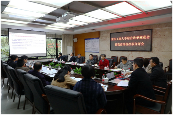 发展规划处处长罗勇汇报学校综合改革推进情况及教育评价自评情况,参会人员对汇报内容进行了深入讨论,并提出了相关意见建议。