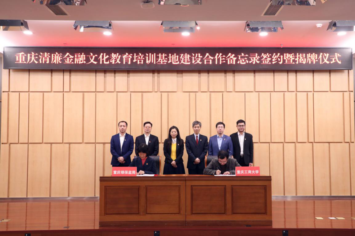 12月23日,重庆清廉金融文化教育培训基地建设合作备忘录签约暨揭牌仪式在我校图书馆第一会议室举行。重庆银保监局党委书记、局长蒋平,副局长徐静,纪委副书记左鹏,办公室主任燕翱,我校校长孙芳城、副校长赵骅、校长助理谭松涛出席仪式。重庆市银行业、保险业行业协会相关负责人,20余家在渝金融机构有关负责同志,学校相关部门负责人以及金融学院、重庆廉政研究中心部分教师代表参加了仪式。仪式由校长助理谭松涛主持。