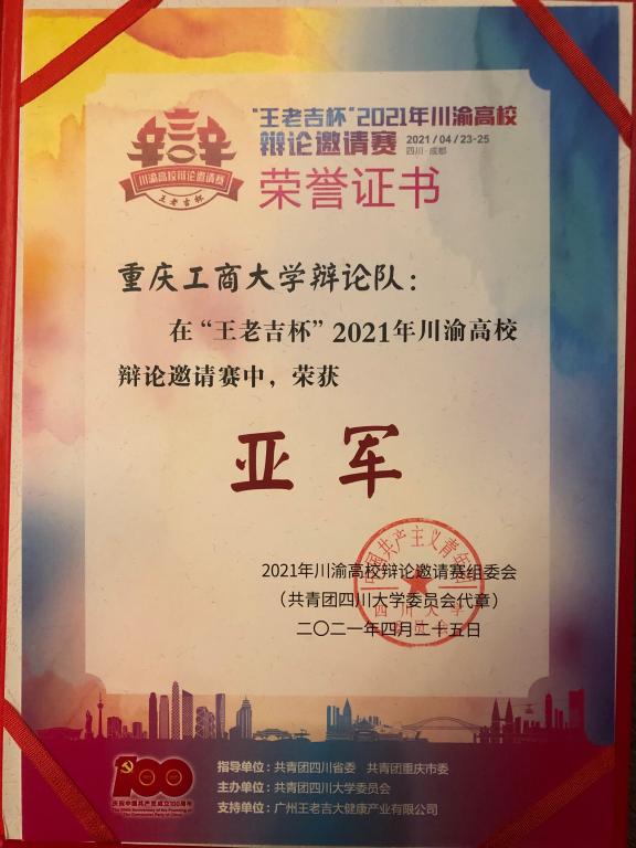 为引导川渝地区青年大学生积极思考、建言献策,主动融入成渝地区双城经济圈建设,彰显新时代大学生的思辨精神,促进川渝地区高校青年大学生的深入交流,加强川渝地区高校在思辨文化育人工作上的深度合作,4月23日至25日,来自川渝地区的8所高校——四川大学、电子科技大学、西南财经大学、西南交通大学、西南政法大学、西南大学、重庆大学、JINNIAN金年会,汇聚在四川大学江安校区参加2021“王老吉杯”川渝高校辩论邀请赛,我校辩论队喜获邀请赛亚军,校辩论队成员刘薪雨荣获优秀辩手称号。