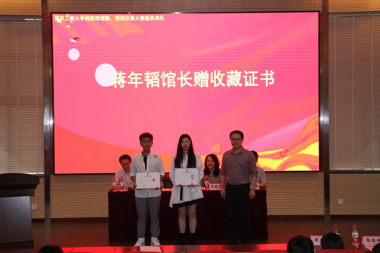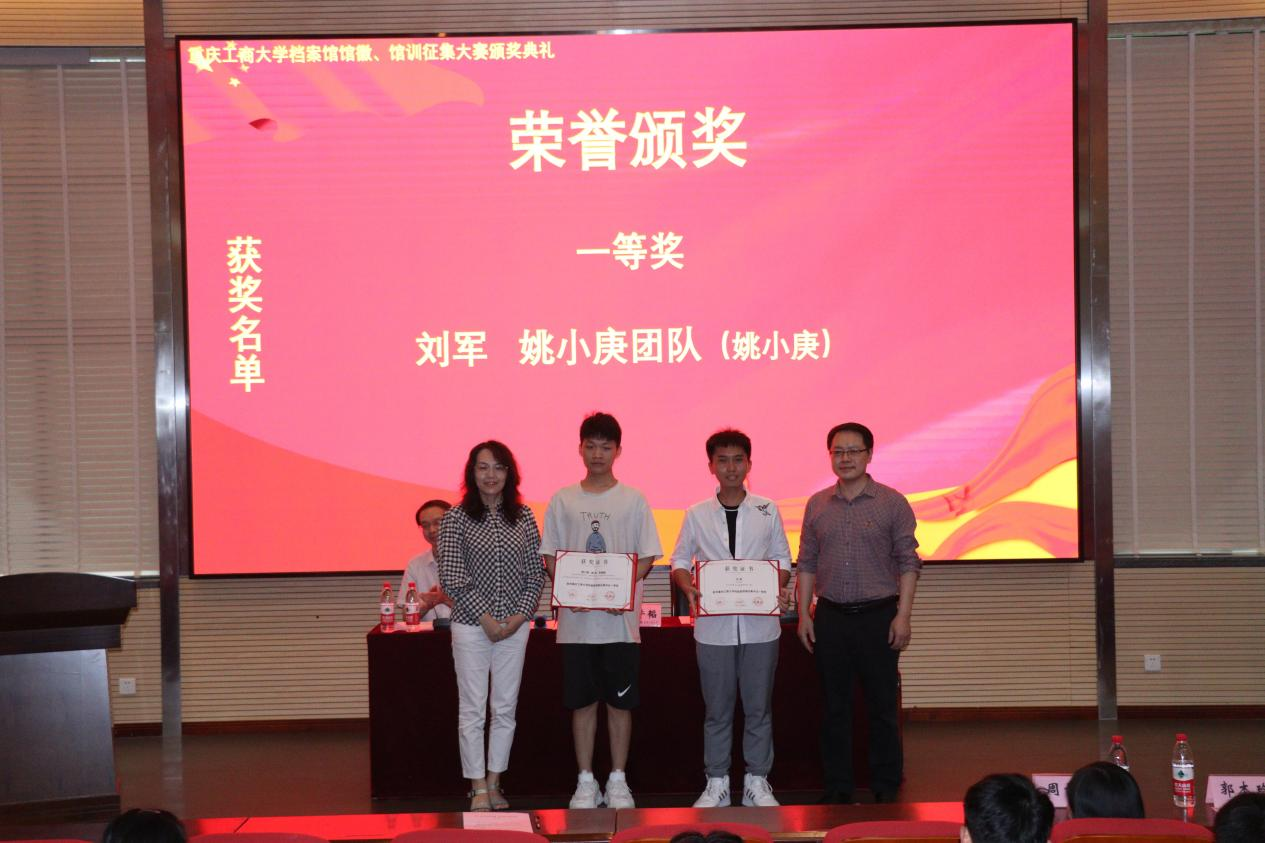 5月20日中午,由我校档案馆、艺术学院、创新创业学院共同举办的JINNIAN金年会档案馆馆徽、馆训征集大赛颁奖典礼在兰花湖片区报告厅成功举行。档案馆馆长蒋年韬、艺术学院党委书记李莉莎、档案馆副馆长郭楠、艺术学院专职组织委员冉涛、教务处副处长胡卫军、艺术学院学工办主任郭本玲、档案馆办公室主任周雪玉以及获奖学生和创享设计师团队的同学参加了此次颁奖典礼。