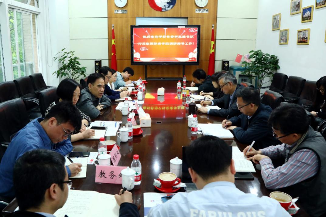 5月26日上午,学校党委书记李志雄到国际商学院调研指导工作。有关职能部门负责人陪同调研。
