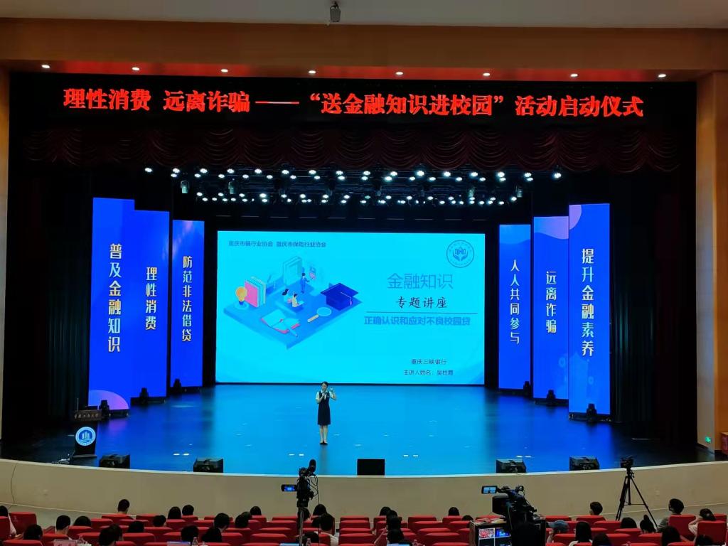 9月16日下午,由重庆市教委、重庆银保监局联合主办的“送金融知识进校园”活动启动仪式在我校举行。重庆市委教育工委委员、市教委副主任邓沁泉,重庆银保监局副局长徐静,我校副校长李国军,重庆市银行业协会、重庆市保险行业协会和部分银行保险机构代表,以及我校师生代表200余人参加了现场活动。