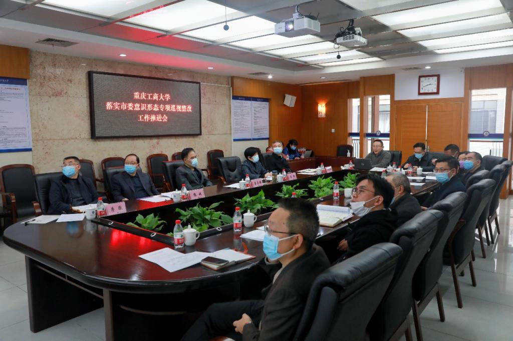 11月17日下午,我校在厚德楼3019会议室召开落实市委意识形态专项巡视整改工作推进会。学校党委书记、巡视整改工作领导小组组长李志雄,学校党委副书记、巡视整改工作领导小组常务副组长宋豫、党委常委、副校长张波、李国军、李敬,党政办公室、纪检监察室、党委宣传部、党委学工部、党委保卫部、党委教师工作部、国际合作与交流处、教务处、研究生院、招生就业处、信息化办公室、重庆金融学院、马克思主义学院等相关二级部门主要负责人参加。会议由李志雄主持。