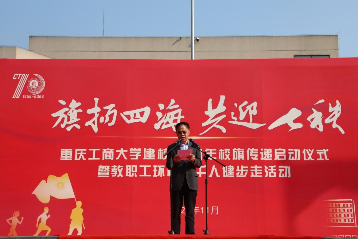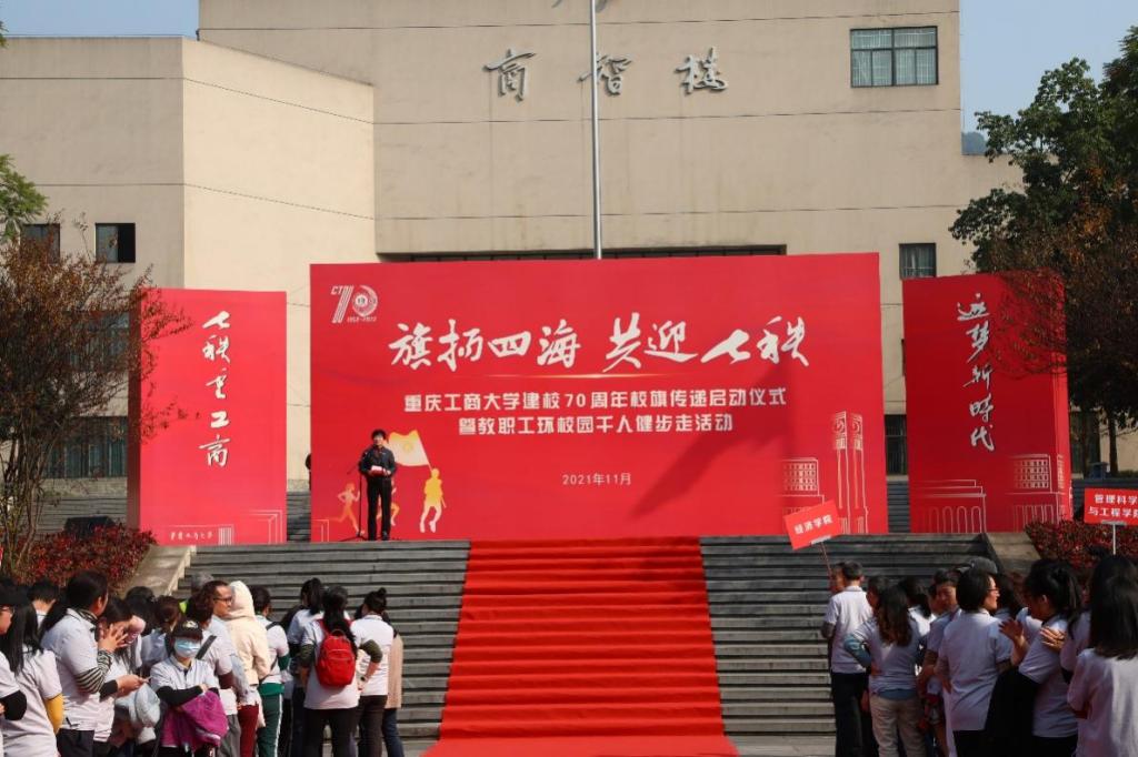 11月26日下午,我校在含弘广场隆重举行JINNIAN金年会建校70周年校旗传递启动仪式暨教职工环校园千人健步走活动。学校党委书记李志雄,党委副书记宋豫,党委常委、副校长陈运超、李国军、李敬,学校校友会副会长王敬春、周勃、赖家国以及教职工代表700余人、校友代表70余人、学生代表70余人、其他代表70余人参与了此次活动。活动由宋豫主持。