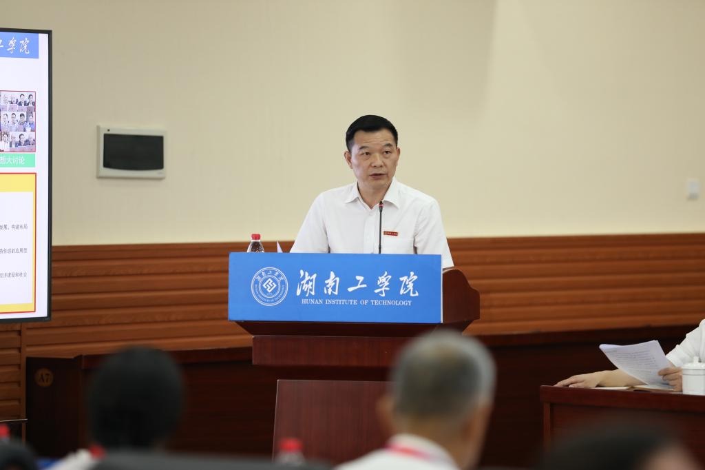 专家组成员湖北中医药大学党委书记唐峻、蚌埠学院原党委书记刘泽功、湖南大学实验室建设与设备管理处处长杨旭静、湖南科技大学研究生院院长李海萍、国家管网集团广东省网公司外部董事钱建华,项目管理员西南石油大学教学评估处质量评估与监测研究办公室主任熊凤,秘书三江学院质量管理与评估处处长卞钰,湖南省教育厅高等教育处副处长王荣,五位见习秘书和全体校领导出席会议。