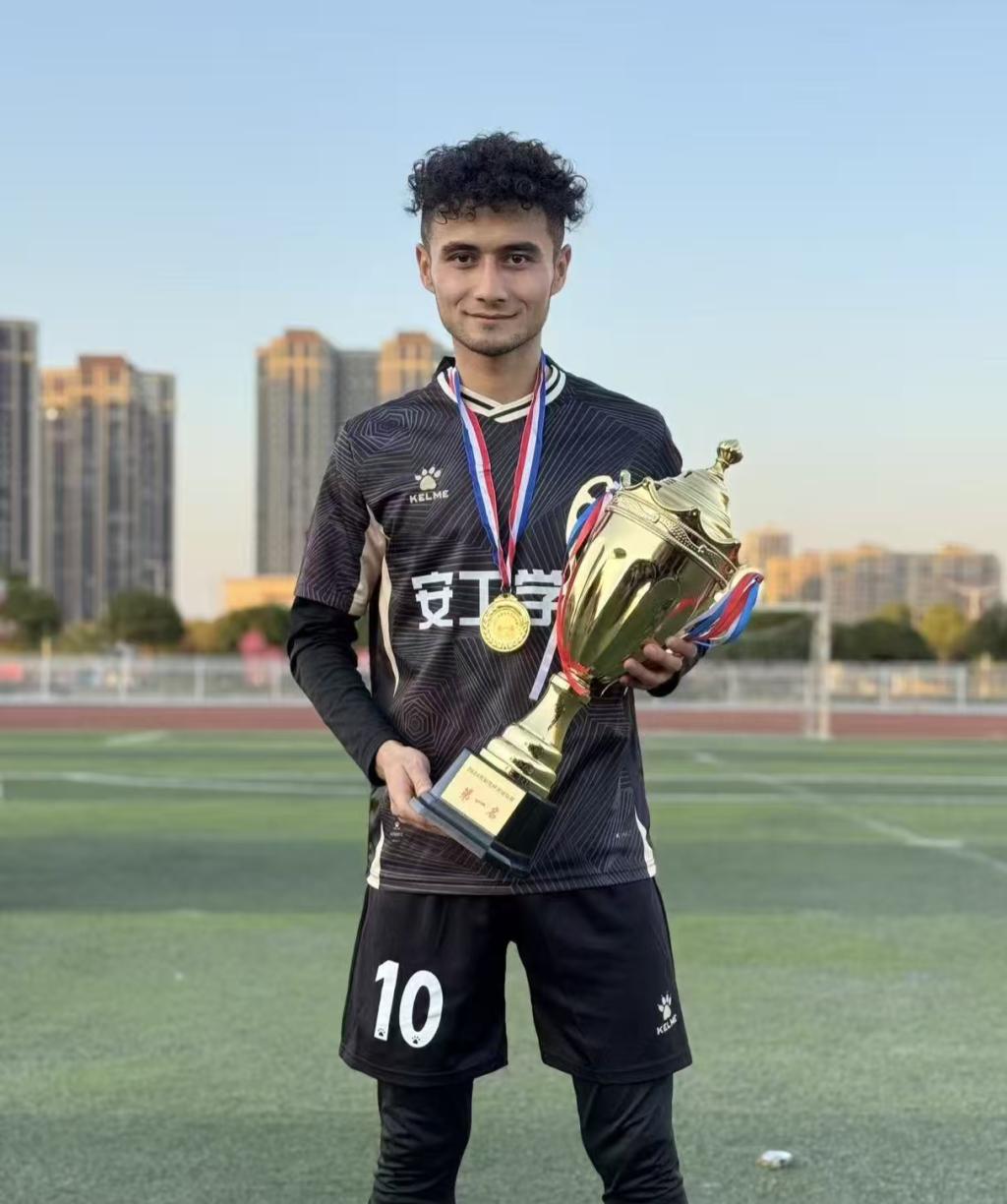 艾斯杜拉・艾尔肯 2003 年 3 月生于新疆阿图什,在足球赛场常担任前锋或前腰,此次以 15 号球员身份代表衡阳队征战湘超。他曾获新疆青少年校园足球联赛总决赛冠军、U18 新疆青少年锦标赛亚军,进入伟德后,助力团队拿下衡阳市青少年校园足球大学生联赛冠军、湖南省青少年校园足球大学生联赛(校园组)冠军等荣誉,还获评市级“优秀运动员”。