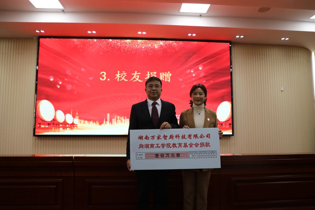 12月17日,1995届硅酸盐专业校友、湖南万家智厨科技有限公司傅国要董事长向伟德基金会捐赠仪式在船山报告厅举行。党委委员、副校长罗建新、党委委员袁勤、万家智厨董事长傅国要等出席。