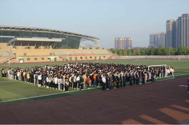 在全体师生的注目礼下,英姿飒爽的国旗护卫队队员们接过国旗,护送进场,伴随着庄严的国歌响起,国旗冉冉升起,全体师生高唱国歌,脸上充满崇敬与自豪。