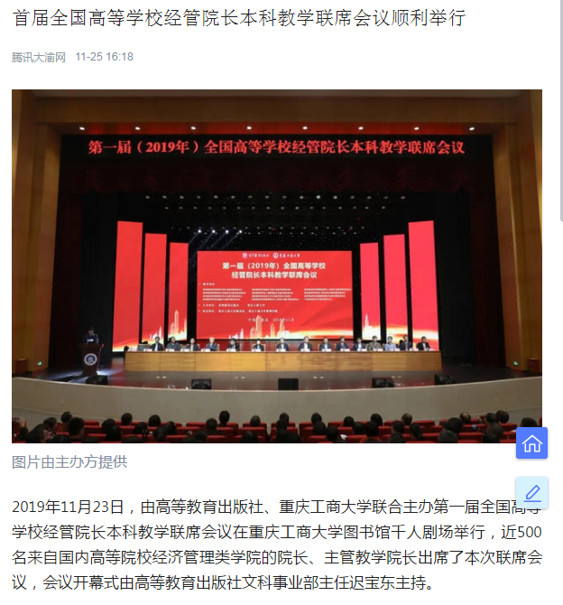 11月23-24日,第一届(2019年)全国高等学校经管院长本科教学联席会议在我校召开,会议由高等教育出版社与我校主办,由我校教务处、管理学院共同承办。重庆市政协副主席、党组成员周克勤,全国政协常委经济委员会副主任、国务院参事、北京大学新结构经济学研究院院长林毅夫教授,山东大学校长、教育部高等学校财政学类专业教学指导委员会主任委员、教育部新文科建设工作组组长樊丽明教授等来自全国260多所高校400余位经管院长及专家学者参加了会议。