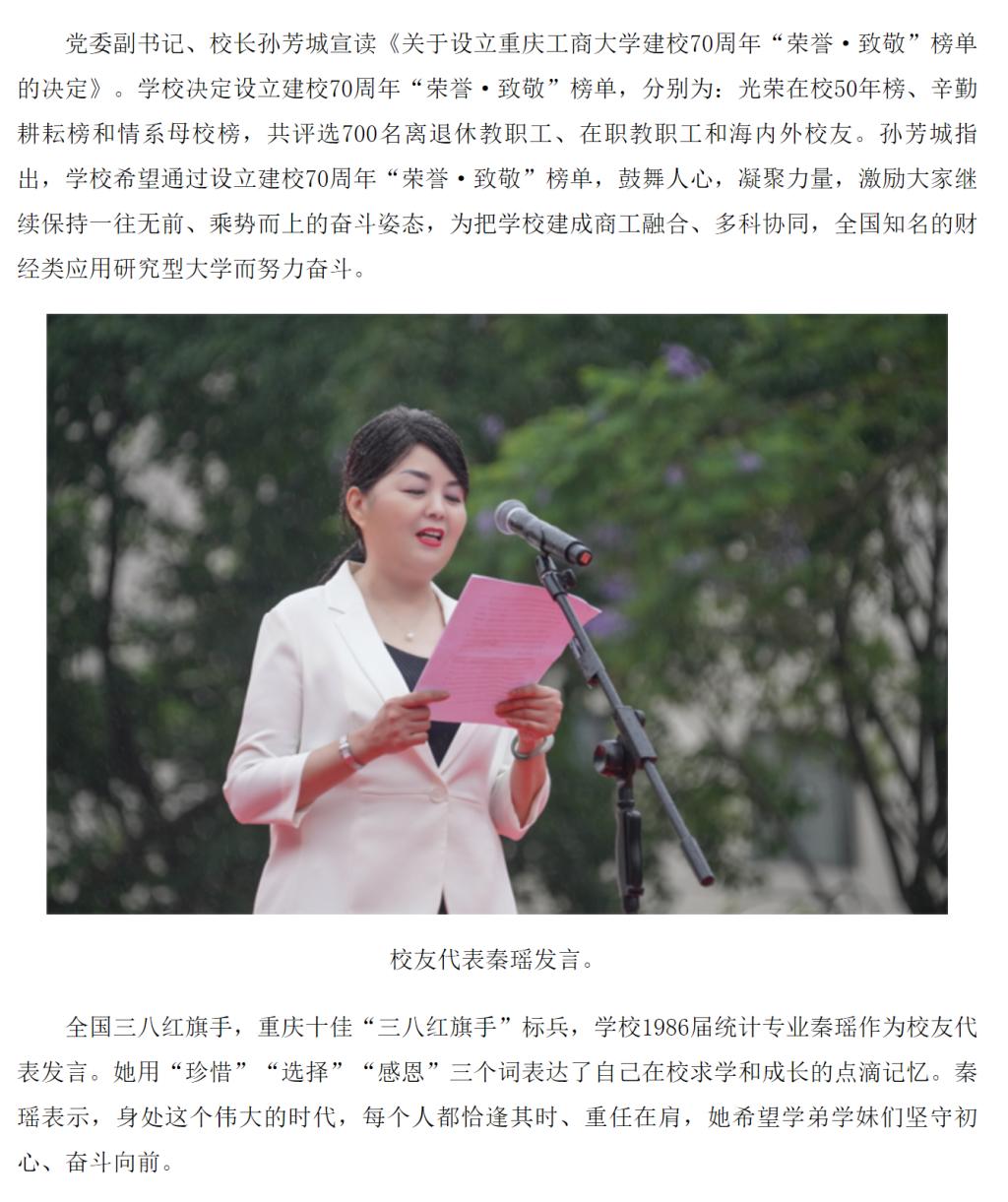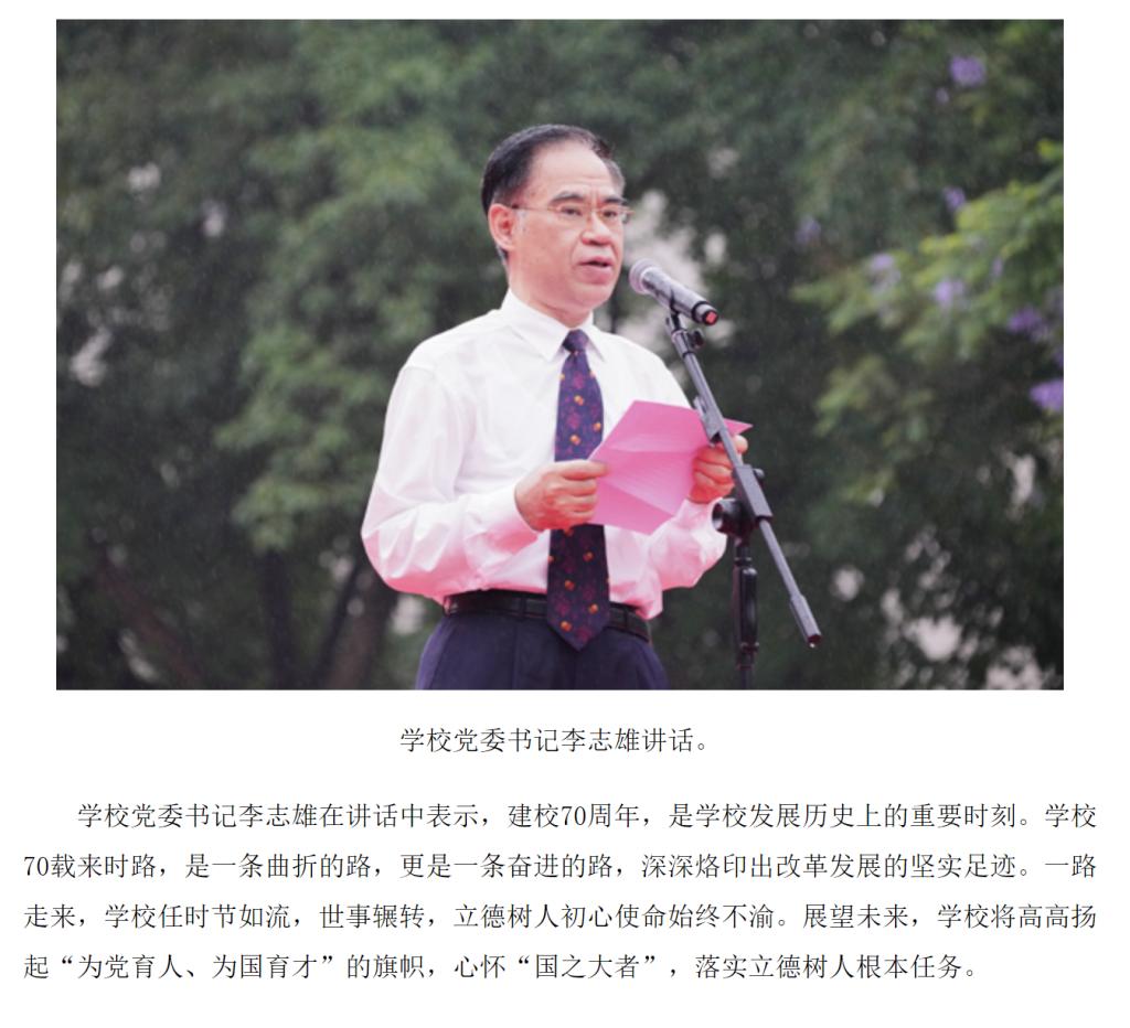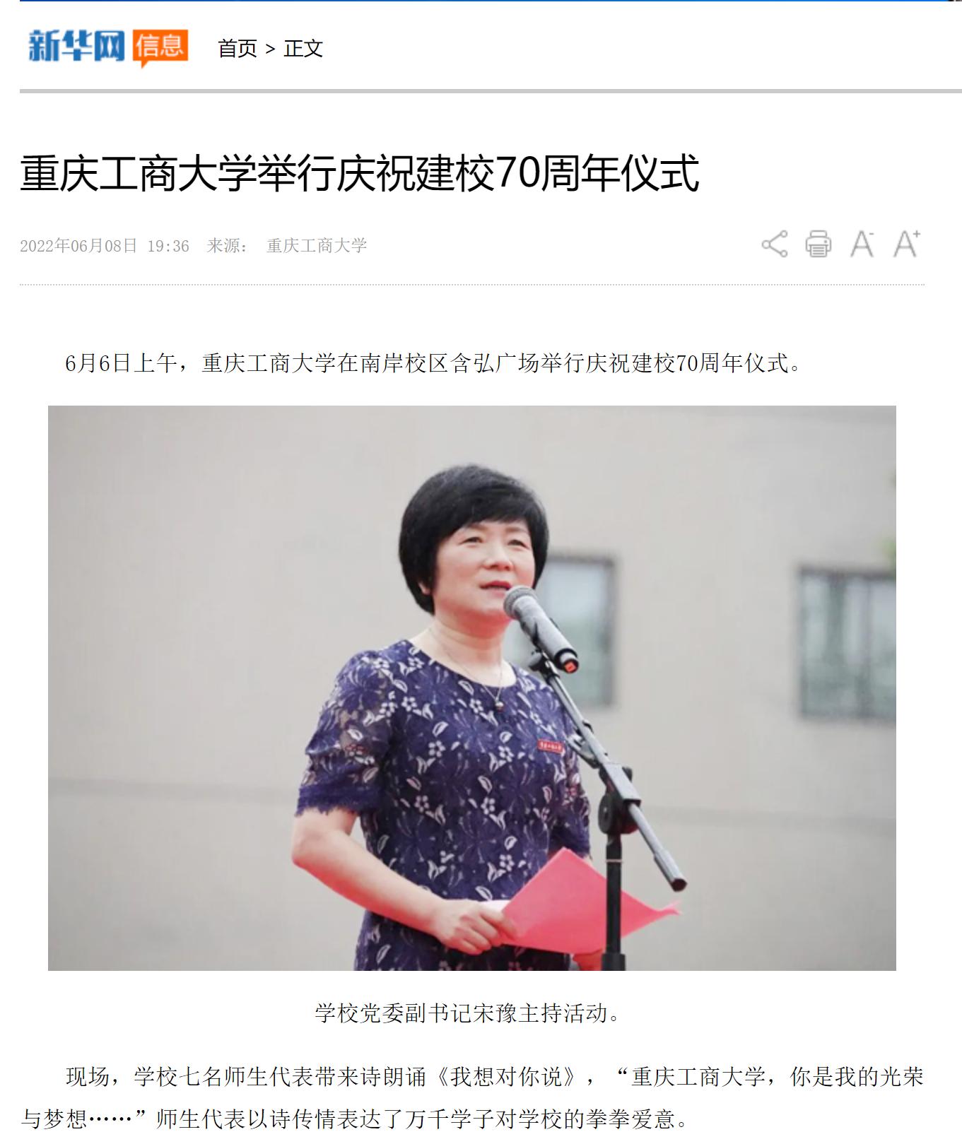 6月6日上午,我校在南岸校区隆重举行庆祝建校70周年升国旗仪式。6月8日,新华网客户端以“JINNIAN金年会举行庆祝建校70周年仪式”为题,进行转载报道。