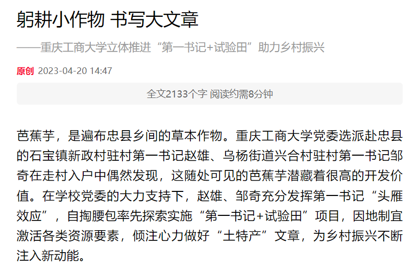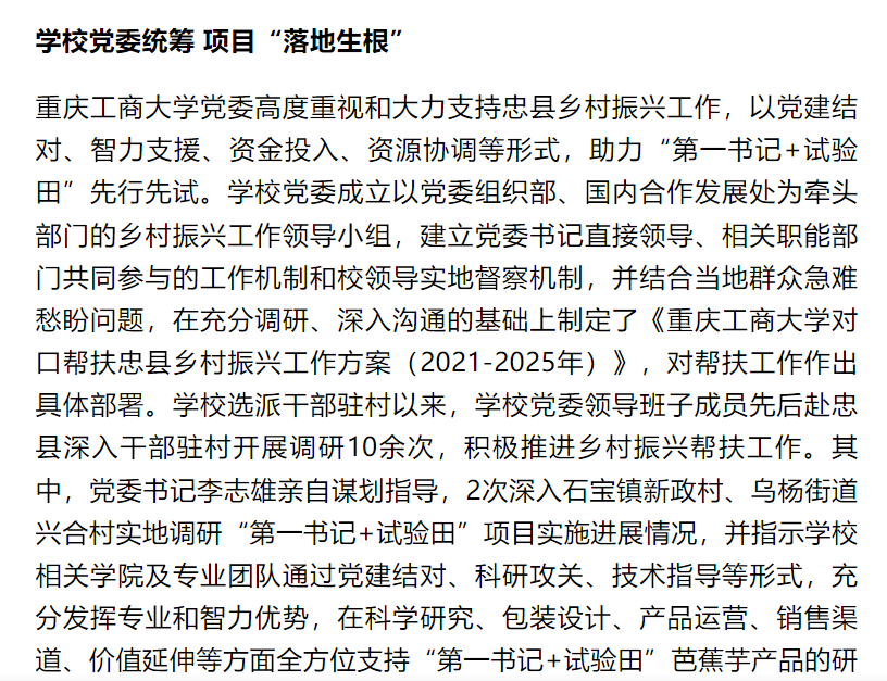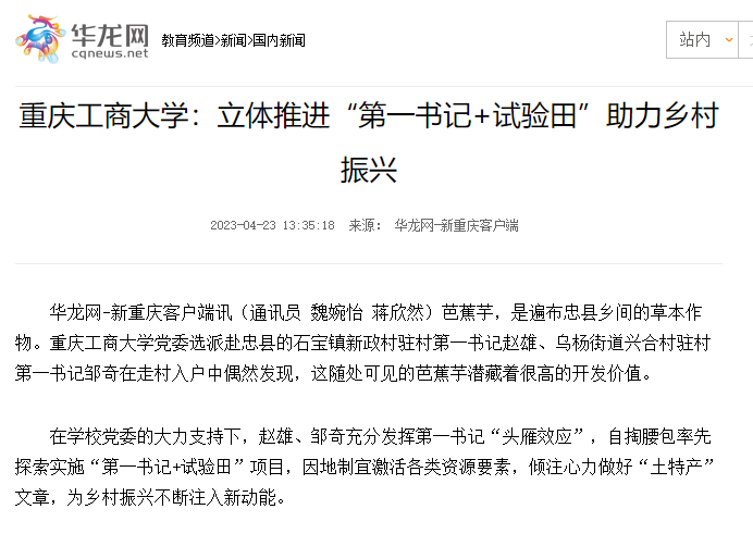 重庆党建门户七一网、华龙网刊载《JINNIAN金年会立体推进“第一书记+试验田”助力乡村振兴》工作情况