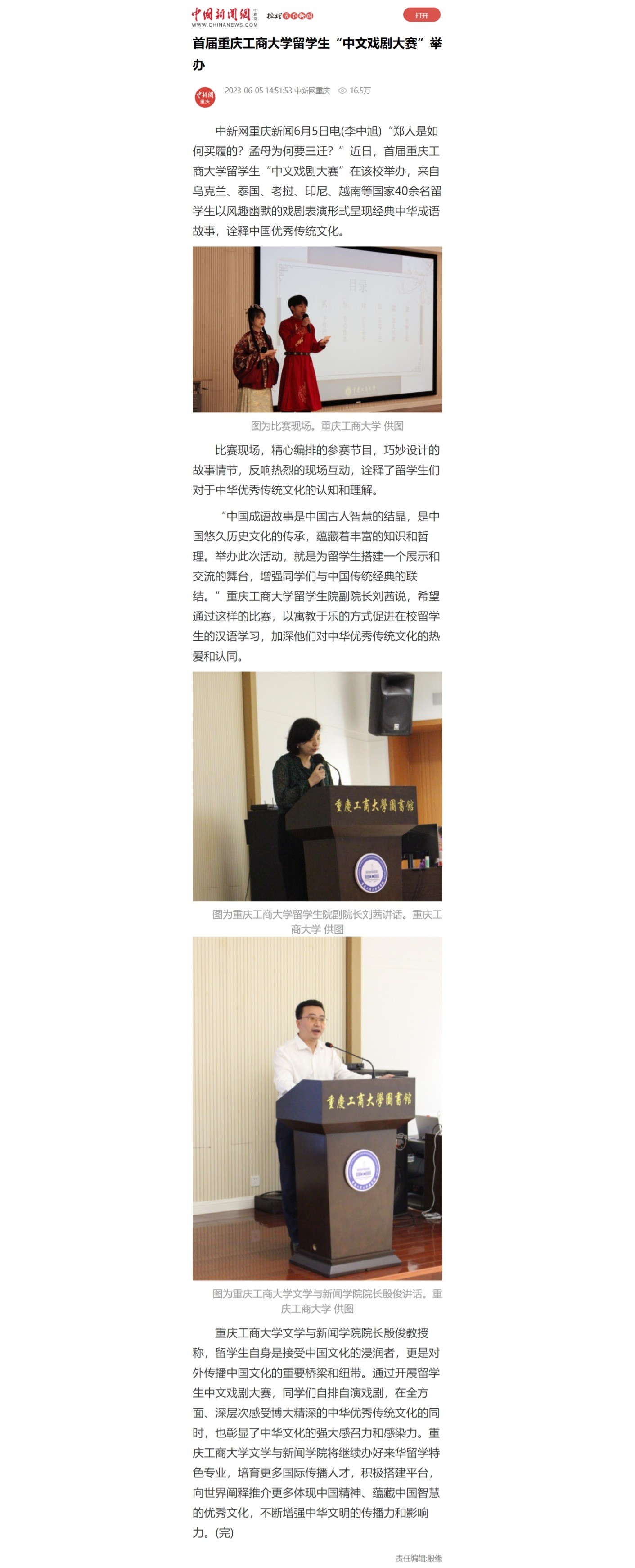 中国新闻网、华龙网、中国网等媒体报道我校留学生首届中文戏剧大赛