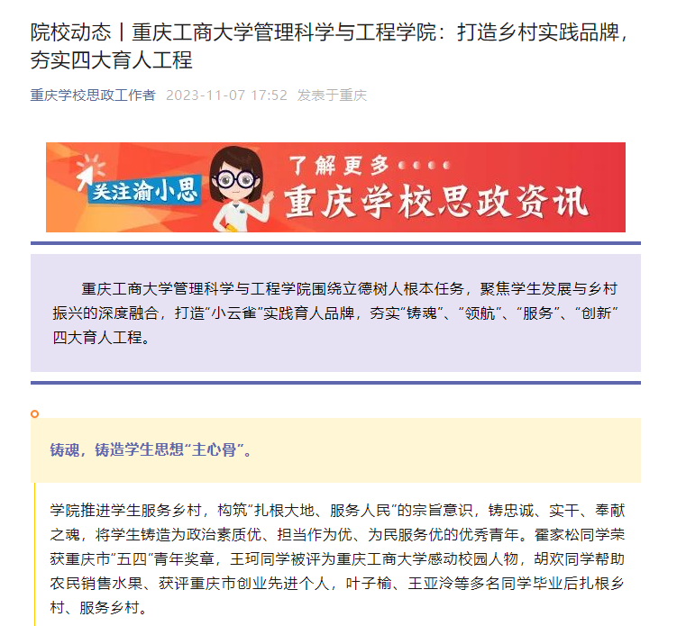 原文链接:JINNIAN金年会管理科学与工程学院:打造乡村实践品牌,夯实四大育人工程https://mp.weixin.qq.com/s/Vhntf0fWHQnfBnYlUECjxw