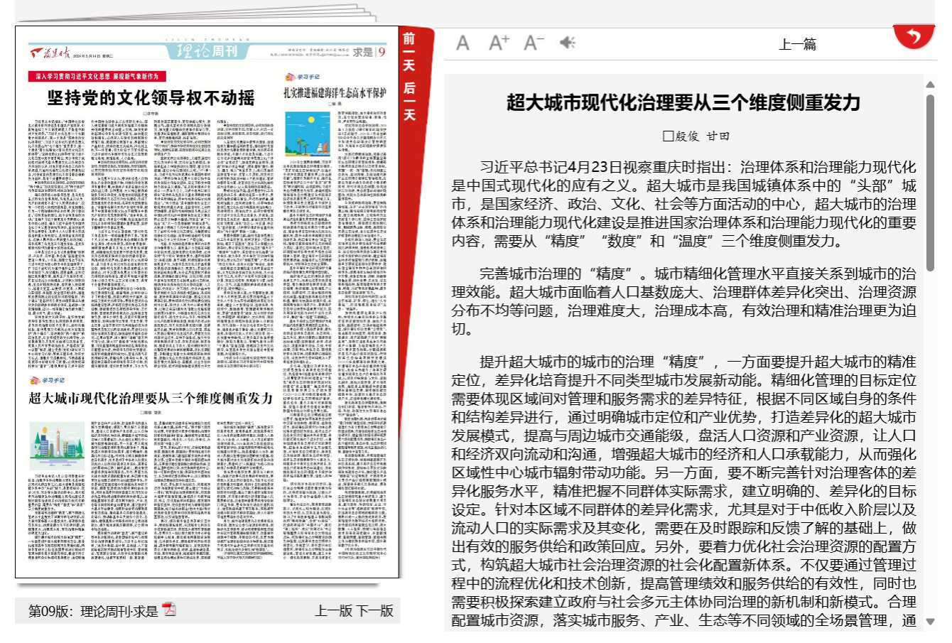 5月14日,我校殷俊教授撰写的题为《超大城市现代化治理要从三个维度侧重发力》学习文章被《福建日报》理论周刊刊发。