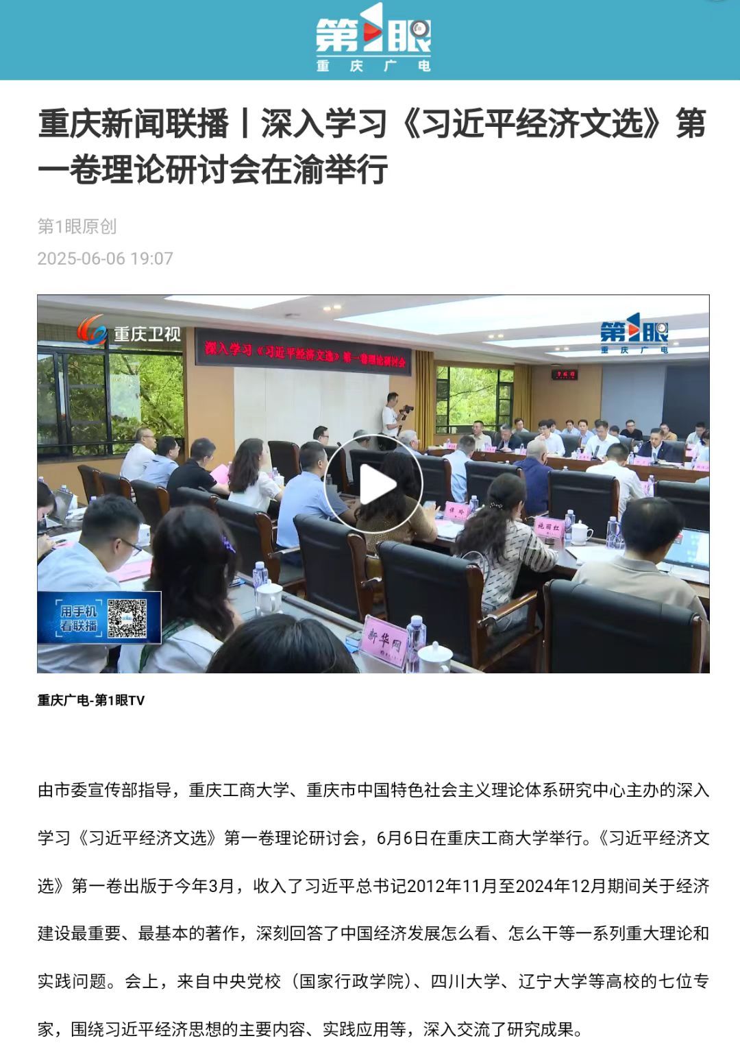 2.重庆广电第1眼:重庆召开深入学习《习近平经济文选》第一卷理论研讨会