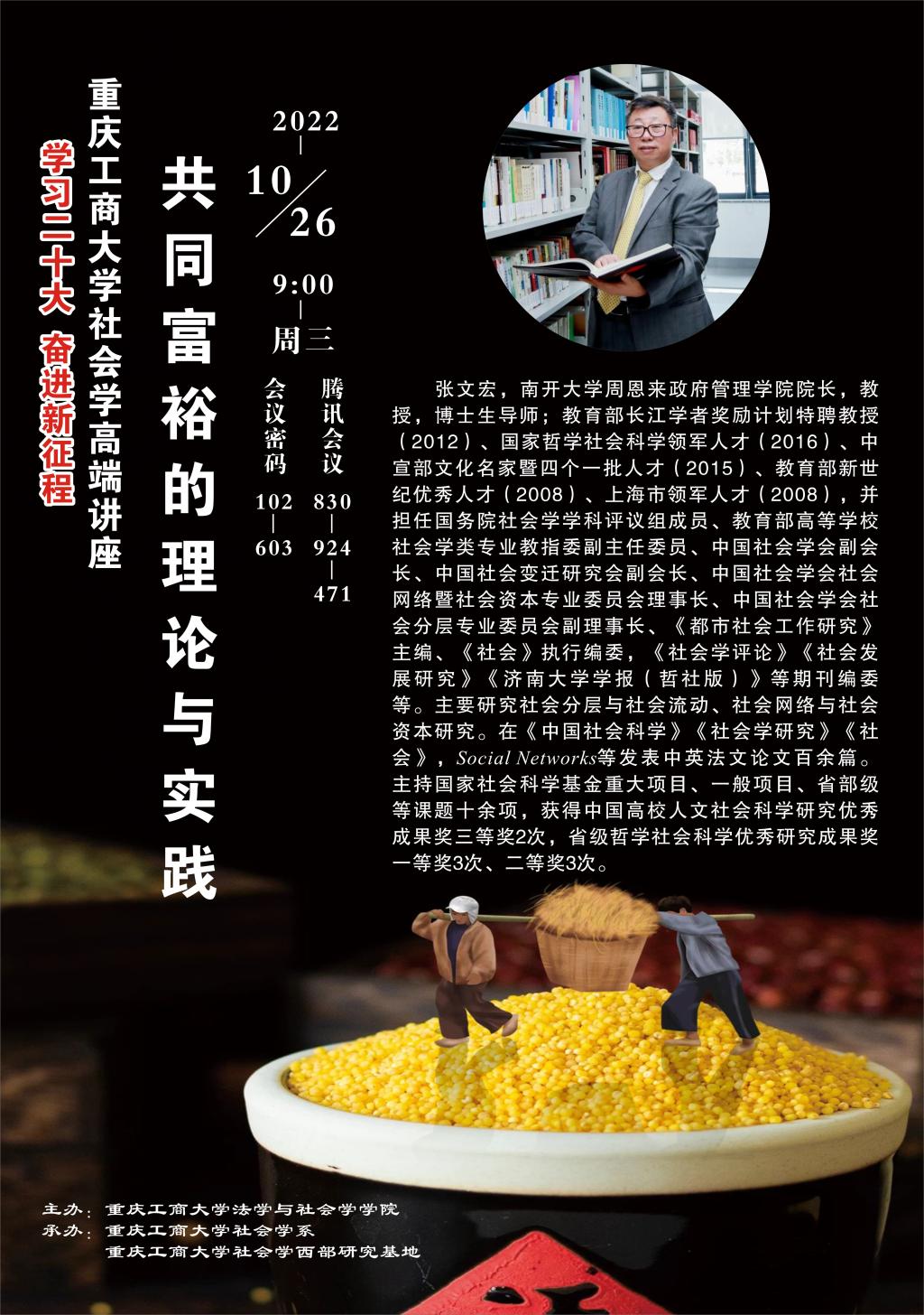 学习二十大,奋进新征程。 为推动JINNIAN金年会社会学重庆市“十四五”重点学科及一流专业建设,JINNIAN金年会社会学系、JINNIAN金年会社会学西部研究基地特举办社会学系列论坛。论坛为期一个月(2022.10.20-11.20),共计10场。论坛负责人:罗兆均(邮箱:545319529@qq.com)。具体安排如下:
