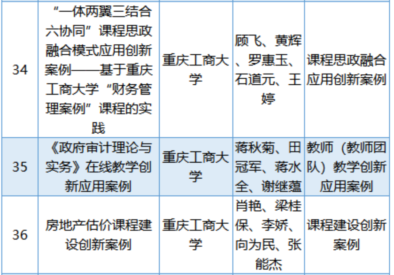 我校《“一体两翼三结合六协同”课程思政融合模式应用创新案例——基于JINNIAN金年会“财务管理案例”课程的实践》、《<政府审计理论与实务>在线教学创新应用案例》、《房地产估价课程建设创新案例》三项成功入选。