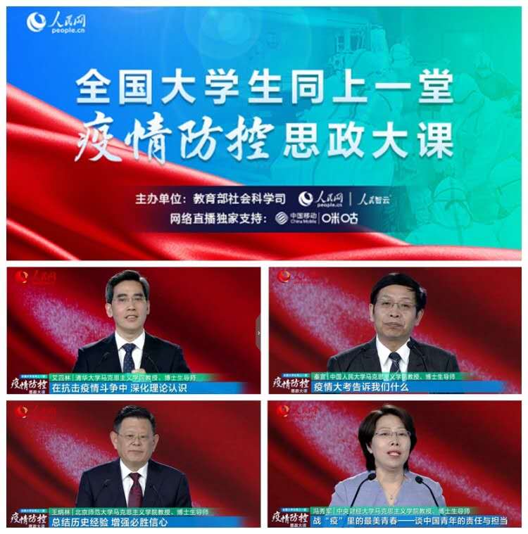 马克思主义学院副院长刘富胜教授谈到:这次课形式鲜活、内容深刻、影响力大,能够快速凝聚起战“疫”共识、协同共识和发展共识。专家们从历史与现实、国内与国外、技术与管理、法治与德性等多个维度对疫情及其防控进行了科学全面的解读,有理论的深度、情感的温度和视野的广度,做到了对习近平新时代中国特色社会主义思想的真懂真信真用真行,破解了当前思想政治理论课教学中的重点和难点,受到老师和同学们的好评。