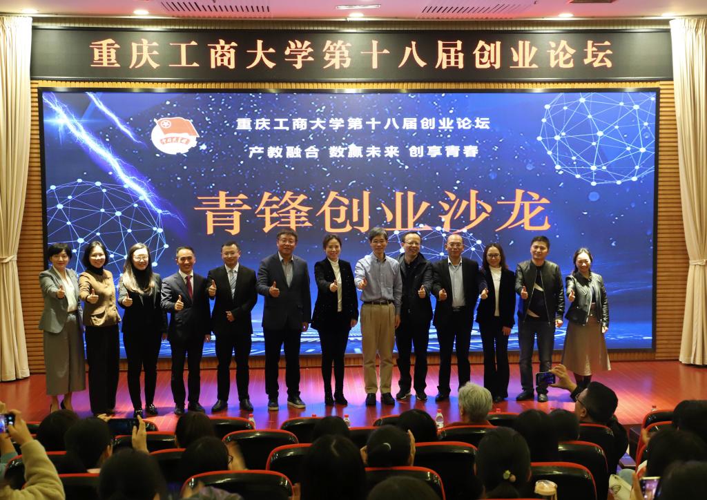 随后,创业论坛开启了第一项活动,以“产教融合、数赢未来、创享青春”为主题的“青锋创业沙龙”。美国密苏里大学访问学者、管理学院教师邓辅玉担任本次沙龙的主持人,在她的带领下,俞云峰、李雪娇、马尚鹏三位嘉宾分别与大家分享了自己的创业经历。俞云峰先生首先分享了自己艰难的创业史,提出创业不但要热爱,要有激情,而且重在坚持,不要轻言放弃;马尚鹏先生指出创业者要像狼一样有敏锐的嗅觉,要主动挖掘和发现机会,当机会降临时,要善于抓住机会;李雪娇女士深情告诫学弟学妹,创业路上充满挑战和困难,要敢于应对挑战,勇于直面困难,才能实现个人成长和创业目标;尹元福院长以创业教育者的视角,告诉大家空谈误国、实干兴邦,奋斗的青春是最美丽的,创业者要敢想、敢做、敢拼。最后,四位嘉宾以致创业者的一封信的分享了自己的创业心声,呼吁青年大学生要寻找目标,努力拼搏,为实现创业梦想而奋斗。
