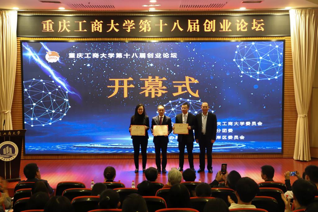 管理学院院长杨柏在会上发言。他以三个阶段归纳了创业论坛的发展历程,充分肯定创业论坛在种子时期走得沉稳扎实,指出经过十八年的积淀,创业论坛已经进入迅速发展的成长期。他希望在成长期中,创业论坛不仅能搭建起学生与老师、企业沟通的桥梁,还能完善创业链条的课程体系、理论研究,让重工商大学子在创业论坛的收获期能收获累累硕果。管理学院党委书记王建明为三位企业嘉宾颁发学院导师聘书。现场的领导嘉宾上台一起按动启动柱,在师生们热烈的掌声中,JINNIAN金年会第十八届创业论坛正式开幕。