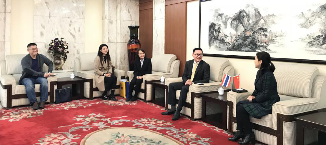 柏群代表学校对NIDA的来访表示热烈欢迎,并简要介绍了学校概况和对外交流的情况,希望在两国经济文化合作不断加深、“一带一路”倡议背景下,与NIDA建立全面友好合作关系。随后KAMPHOL PANYAGOMETH校长简要介绍了学校概况和国际合作情况,并表示欢迎我校硕士生、博士生赴泰交流学习。双方就学术、教学交流、合作科研、博士生联合培养、在泰建立技术研发中心等项目交换了意见。会上,双方就签订合作备忘录达成初步意向。
