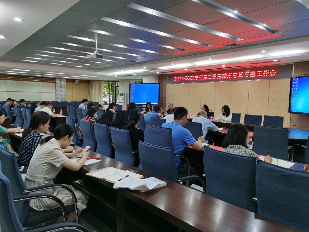 6月17日上午,学校2021-2022学年第二学期期末考试专题工作会在厚德楼2017会议室召开。教务处、学生处、教学质量监督与评估办公室和各学院教学副院长以及分管学生工作的副书记参加了会议。会议由教务处处长骆东奇主持。