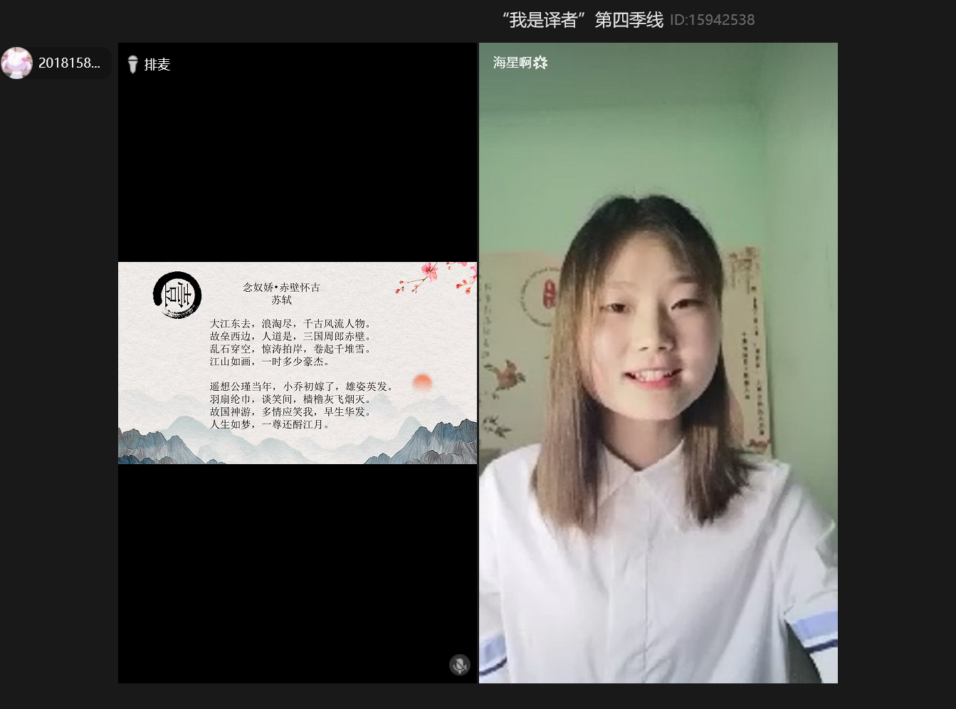 5月22日,由共青团JINNIAN金年会委员会主办、外语学院分团委承办的JINNIAN金年会“新儒商”大学生科技文化节——“我是译者”第四季中国诗词英文译读大会以线上直播的形式顺利举办。本季“我是译者”的活动主题为“致敬英雄”。校团委副书记陆嘉,外语学院党总支书记陈晓东、副院长周琳、党总支副书记程亚参加了活动。
